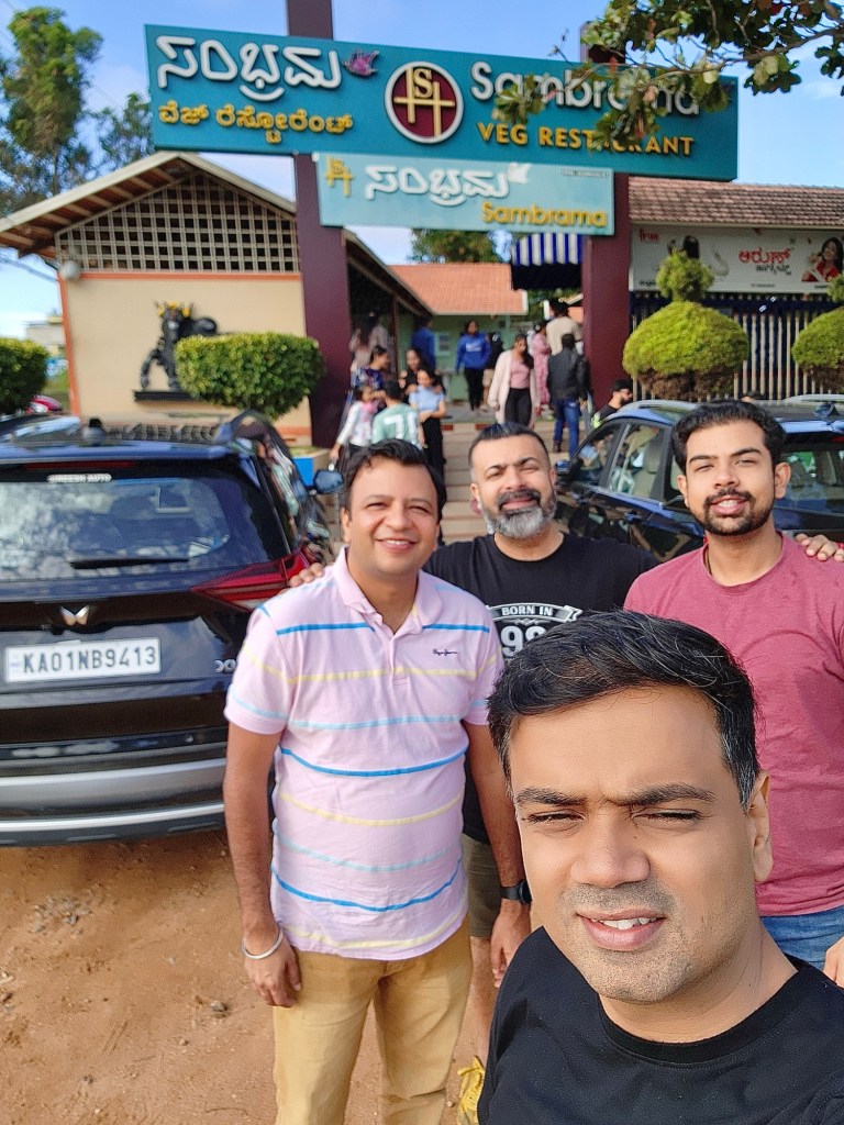 Our day began with an absolutely legendary start! We stopped for breakfast en route, and who do we run into but the Hat-trick Hero himself, Siva Rajkumar! Sharing a table with the Shivanna was an incredible and memorable way to kick off our adventure. What a start to a holiday!