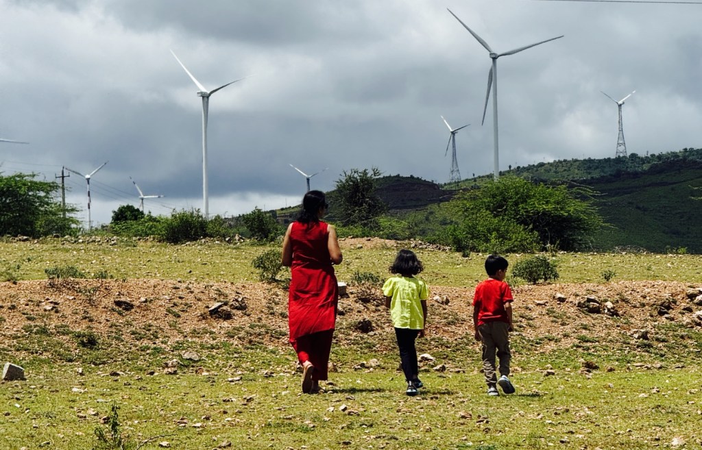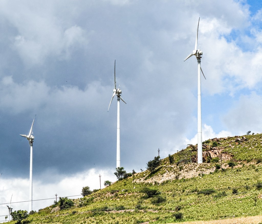 Next, the landscape transformed. As we approached Chitradurga, we found ourselves surrounded by fields of giant, magnificent windmills. These towering structures, with their massive blades turning slowly against the blue sky, captivated the kids (and us!).